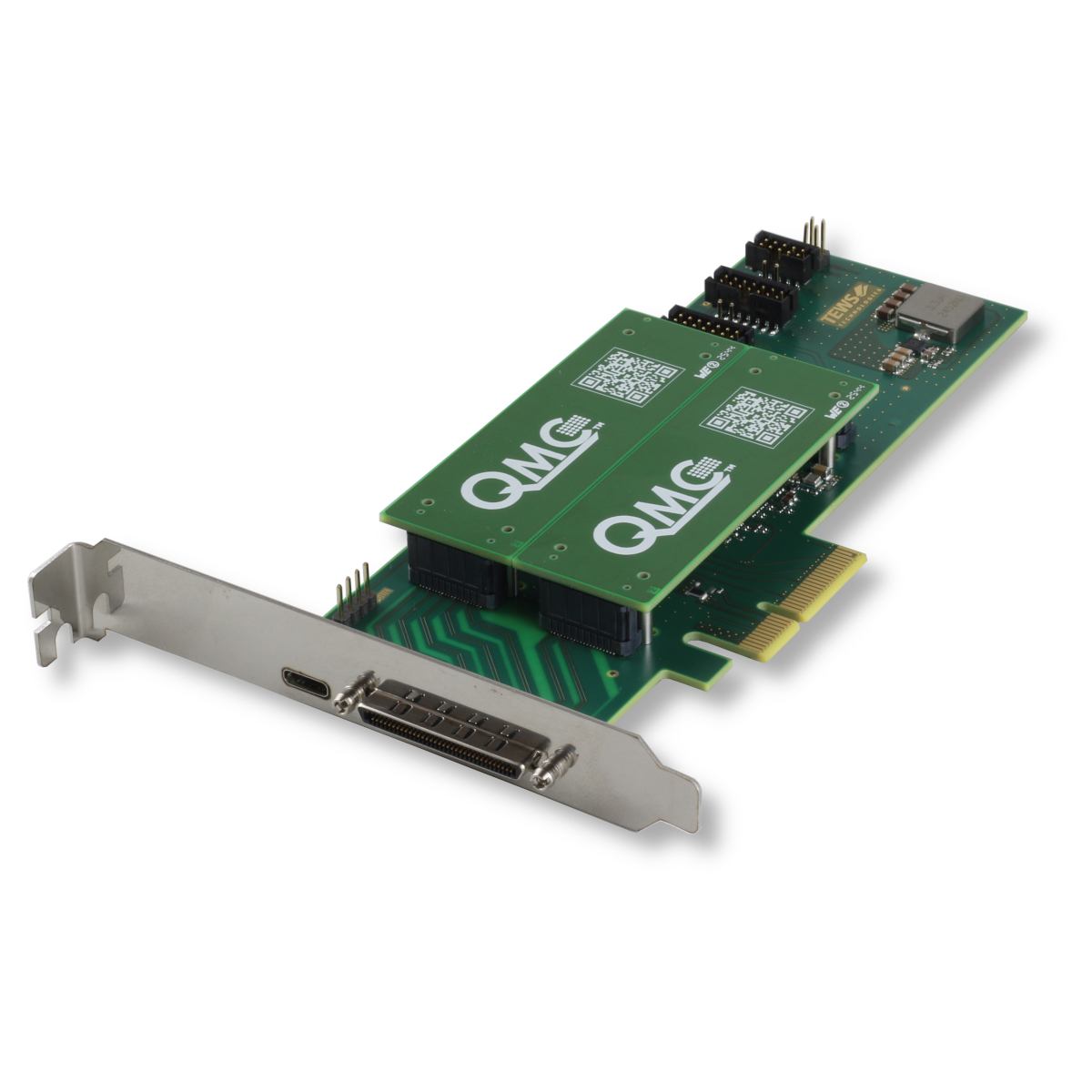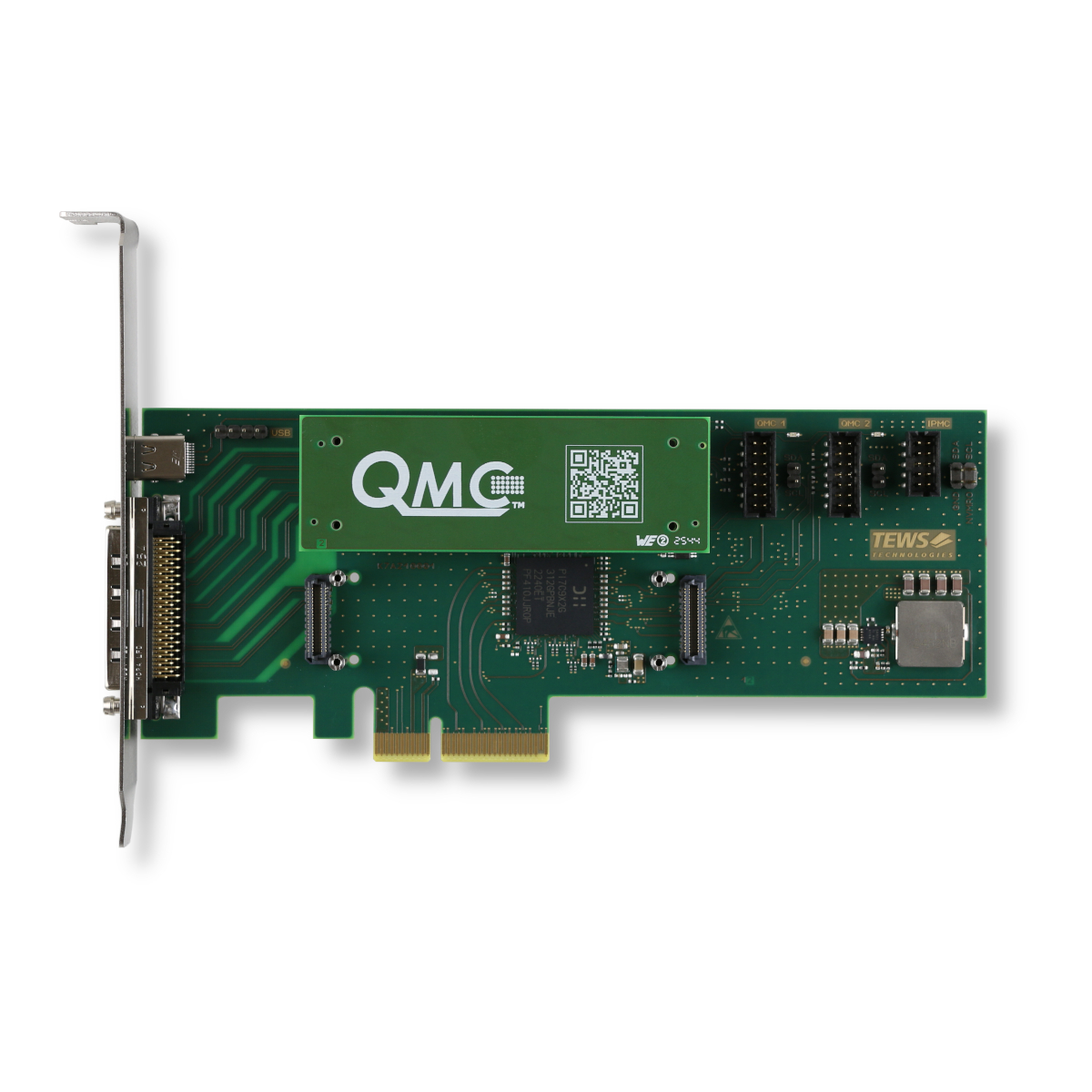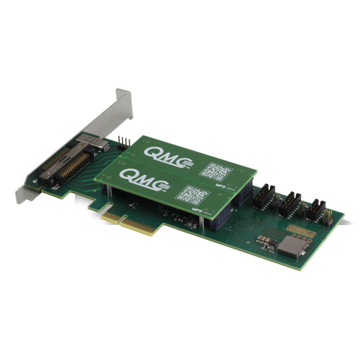 The TPCE210 is a low-profile, half-length PCI Express Revision 2.0 compatible carrier board for two single QMC modules or one double QMC module.